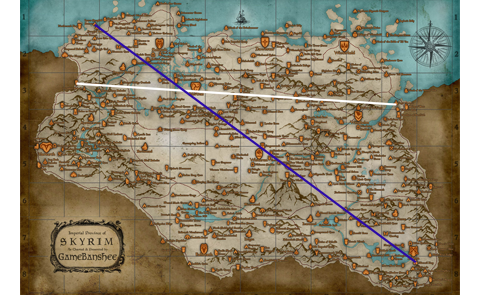 A lot of Skyrim’s praise is based on the size of the world. The first thing most reviews say is how huge it all is and…well, there’s a cheap cock size joke in there somewhere, because while it’s pretty big it isn’t the vast wilderness hype would have you believe. I set my marker on Lower Steepfall Barrow and moseyed there from Mistvale Keep in just under twenty-five minutes – and that includes three bandit gangs, two bears, one troll and getting stuck on a mountain. Deepfall Crossing to Yngol Barrow? Twenty-one.